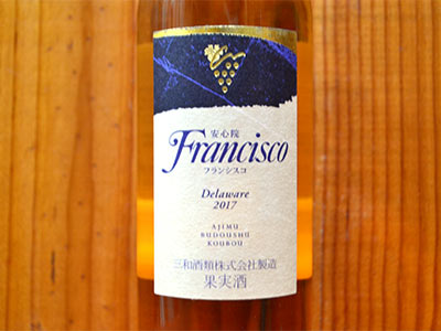 超特選 ベストバイワインに選ばれ、珍しい デラウェアから造られた珍しい白ワイン! 安心院葡萄酒工房・ フランシスコ・デラウェア2017年 ■ 品種:大分県宇佐市安心院町産デラウェア100% 熟した果実の旨味が 口いっぱいに広がる デザートとしても 楽しめる甘口白ワイン! 1974年よりワイン造りを行い、周囲を山に囲まれた盆地に本拠を構える大分県のワイナリー。