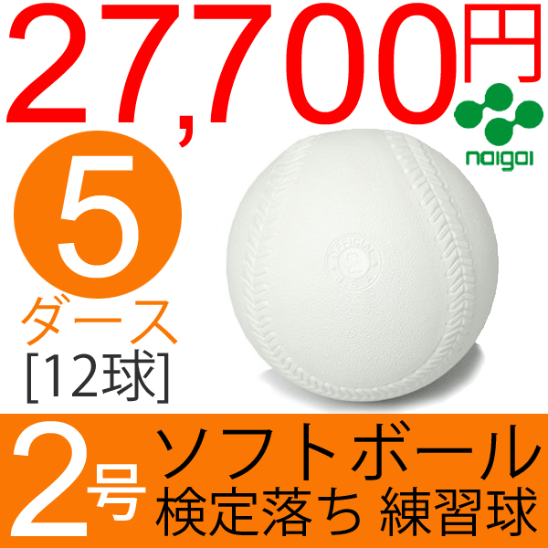 ナイガイ ソフトボール 検定落ち 2号 練習球 5ダース 60球/小学生用 送料無料 スリケン B級品 内外 NAIGAI/【ギフト不可】